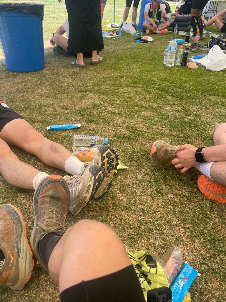 친구들과 무사히 완주 후 바로 뻗었습니다. 자리에 앉아서 휴식을 하며 대회의 여운을 느끼는 중입니다. 첫 트레일러닝 대회를 친구들과 함께 완주하는 시간이 되어서 정말 짜릿하고 기뻤습니다.
