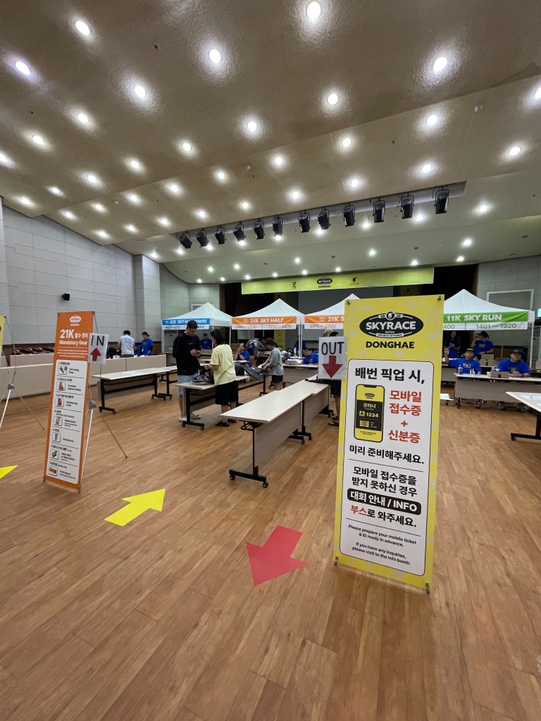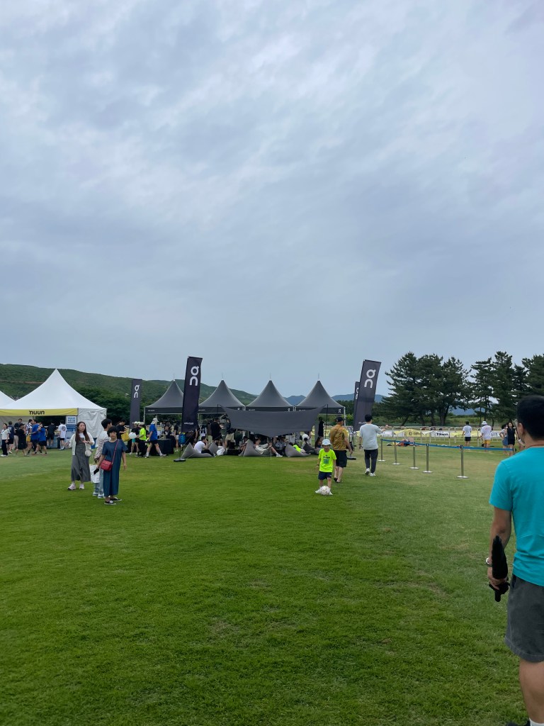 흐린 날씨에 진행되는 첫날 어린이들 경기가 있었습니다. 여러가지 행사 부스를 경험하려고 배번 받고 돌아다니는 중입니다.