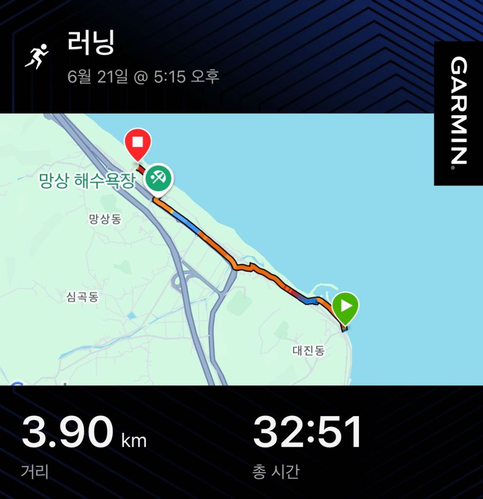 동해 스카이레이스에서 나누어 주신 반팔티를 숙소에서 입어보고 가볍게 조깅을 하러 나가봅니다.